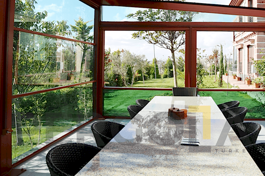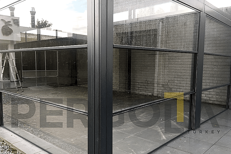 Guillotine Glass Systems, featuring 2 or 3-panel Somfy motorized operation, insulated glass (4mm+16HB+4mm) + Argon gas, tempered glass, and Clear, Fumé, or Smoke glass options, along with full RAL profile colors, delivers aesthetic, four-season comfort and practical usability. It is the perfect solution to transform your space into a modern, safe, and functional living area.