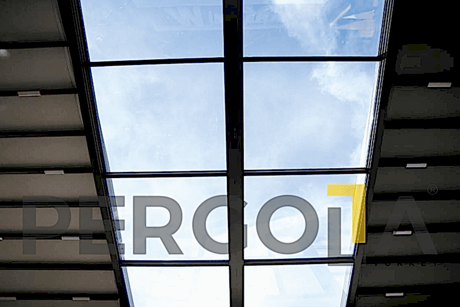 This retractable glazing ceiling system features high-quality aluminum profiles and tempered glass panels that can be lifted seamlessly, opening up spaces to natural light and fresh air. One vane remains fixed while the other three are movable, and the system can stop at any desired level—allowing partial or full opening. Movable vanes can optionally be fixed at a higher position. Thanks to our patented joining system, the system is 100% waterproof, providing complete protection from rain and moisture.