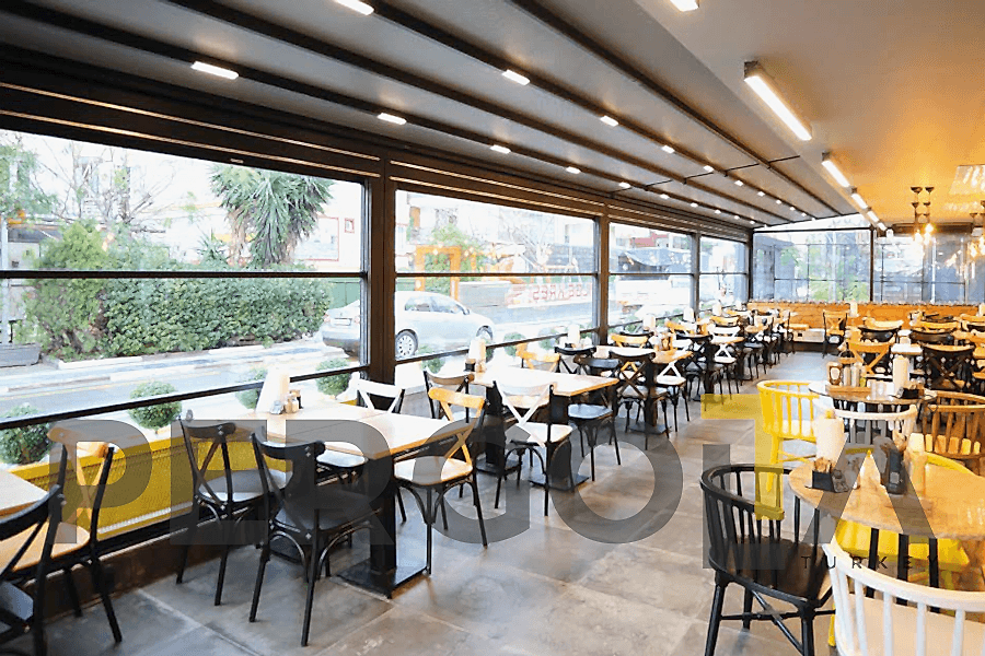 The Motorized Guillotine Glass System—also known as the Motorized Guillotine Window System—offers the perfect combination of comfort, style, and security. Easily controlled remotely, this system is widely used in restaurants, cafes, hookah lounges, terraces, and gardens, enhancing both aesthetics and safety.